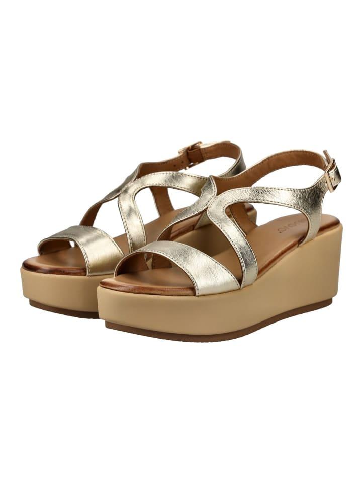 Эти красивые босоножки на танкетке от INUOVO можно носить как повседневно, так и по особым случаям. Мягкая стелька и металлическая отделка дополняют общий вид этих модных и очаровательных туфель, делая их абсолютным маст-хэвом этого сезона. И это еще не все - туфли также могут похвастаться красивой шнуровкой.