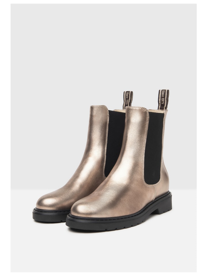 Модные металлические ботинки челси с эластичными вставками и петлей. Они станут настоящей приманкой для модных образов. Стельку можно заменить при необходимости.