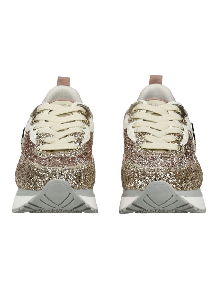 Блестящие кроссовки от LIU JO с гламурным дизайном и яркими металлическими деталями. Прочная подошва обеспечивает повседневную устойчивость, а съемная стелька обеспечивает индивидуальный комфорт и гибкость при использовании ортопедических стелек - модный и функциональный аксессуар.