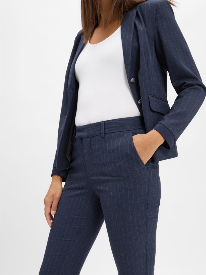 Брюки в тонкую полоску сейчас переживают возвращение - с моделью MMEllen Carie от Mos Mosh, утонченной благодаря содержанию вискозы и классической стрелке, вы будете стильно экипированы для прохладных месяцев.