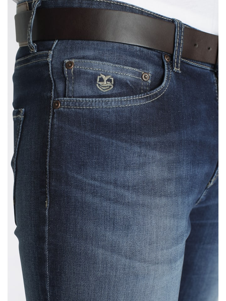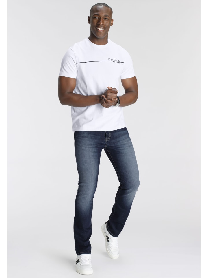 Удобные мужские джинсы-стрейч от DELMAO с эффектным эффектом потертости и деталями, напоминающими потертости. Прямые штанины и низкая посадка. Фирменная бирка. Универсальные варианты дизайна: от повседневного до стильного. Материал обеспечивает комфорт при ношении.