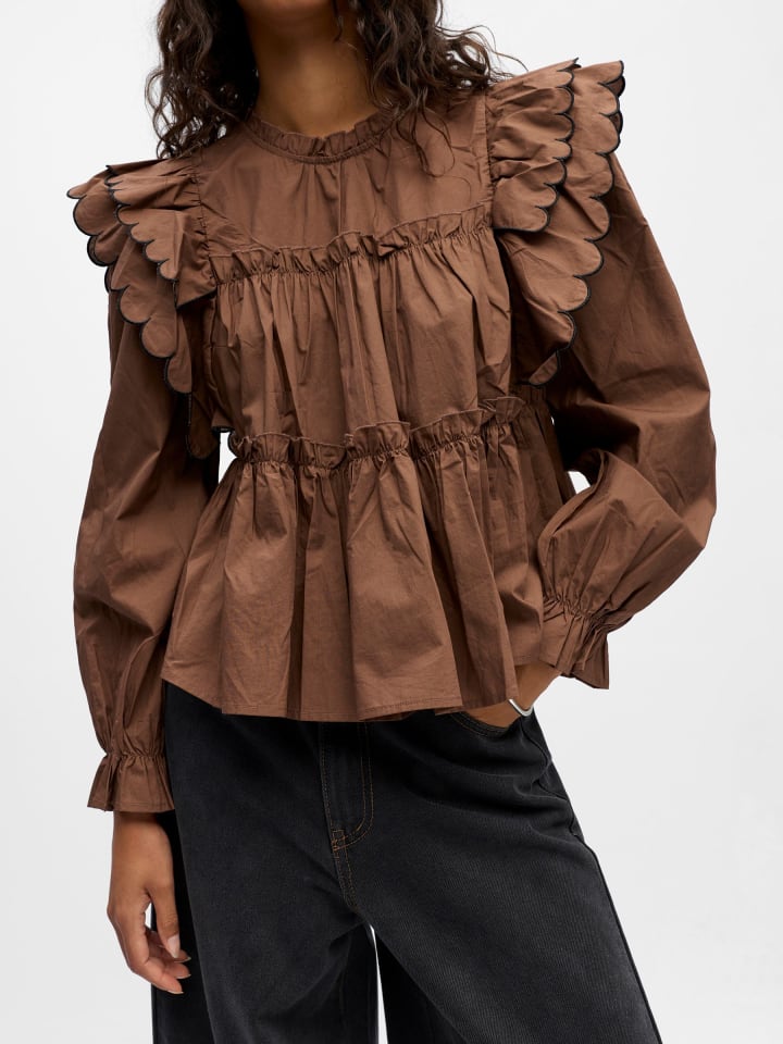 - Топ с длинными рукавами и оборками