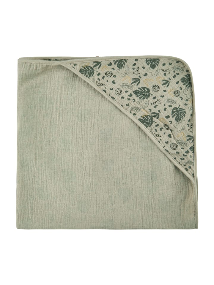 Детское одеяло с капюшоном с жирафом и львом /// Однослойный муслин с принтом из 100% хлопка /// Застежка на липучке предотвращает сползание /// Легкое