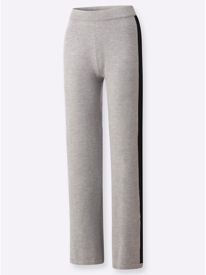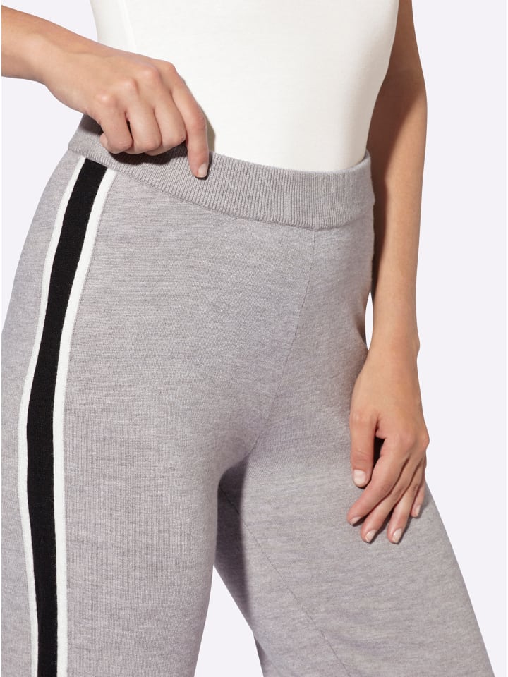 Трикотажные брюки. Удивительно мягкие и удобные, с эластичным поясом. Модные полоски по бокам. Немного завышенная посадка, классический крой, модный широкий крой. Длина брючины примерно 56 см. Изготовлены из вискозы Lenzing ECOVERO.