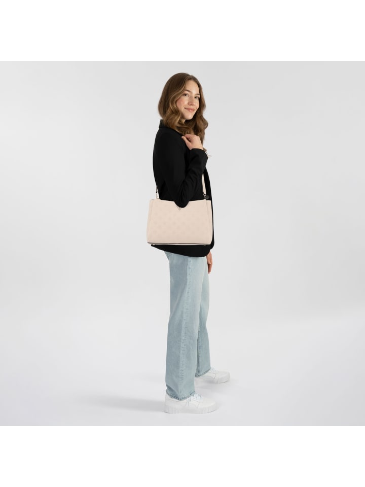 Откройте для себя новый модный хит: сумку через плечо «Tisha» от Guess с захватывающим дизайном, которая искусно сочетает в себе модный дизайн и практичные детали. Изготовленная из прочного полиуретана, она понравится не только ценителям моды, но и обеспечит максимальную долговечность. Она имеет несколько отделений, а легкодоступная магнитная застежка делает ее чрезвычайно практичной. Дополнительное отделение на молнии и внешние карманы делают ее еще более практичной в повседневной жизни. Сумка особенно привлекательна своим съемным и регулируемым плечевым ремнем, предлагающим универсальные возможности для переноски. Не пора ли обновить свой гардероб? Эта стильная вещь ждет вас!