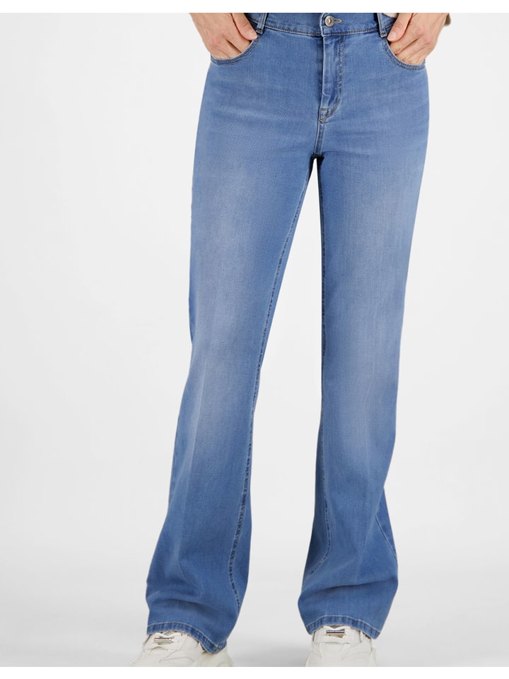 Модель ZURI126-670721 из весенне-летней коллекции - это облегающие джинсы с пятью карманами из высококачественного денима с современным расклешенным кроем. Длина внутреннего шва 82 см и длина брючины 52 см обеспечивают удобную посадку и вневременную элегантность - идеально для универсальных и стильных образов.