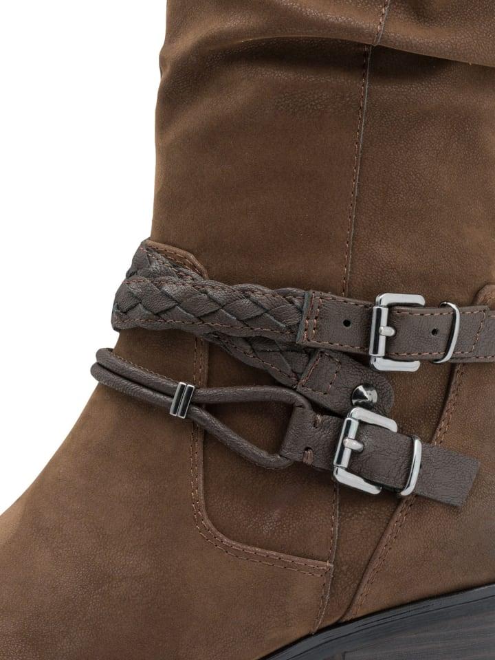 Эти веганские женские ботинки от MARCO TOZZI сделают стильный внешний вид повседневным событием - без какого-либо чувства вины. Легкий в уходе синтетический верх впечатляет своим высококачественным видом и, благодаря своим чистым линиям, выглядит одновременно современным и элегантным. 45-миллиметровый каблук не только создает женственный силуэт, но и обеспечивает устойчивую и комфортную походку - идеально подходит для долгих дней, когда вы хотите гулять осенью и весной стильно и с комфортом. Удобная 15-миллиметровая подошва-платформа еще больше усиливает приятные ощущения от ходьбы, которые дополняет дышащая стелька FEEL ME - она мягко адаптируется к индивидуальной форме вашей стопы и обеспечивает оптимальный комфорт при каждом шаге. Практичная молния позволяет легко надевать и снимать их и подчеркивает функциональный характер дизайна. Закругленный носок идеально гармонирует с высоким голенищем 38,0 см и придает ботинку классический вид с вневременным оттенком. Эти веганские ботинки легко сочетаются с узкими джинсами или платьем миди и станут идеальным выбором для тех, кто ценит и моду, и комфорт. - Технология FEEL для мягкой и эластичной стельки - Веганские - Застежка-молния - Стелька: текстиль - Подкладка: текстиль - Подошва: другой материал - Верх: другой материал