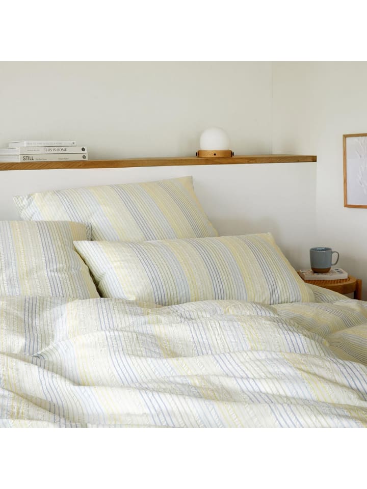Это делает комплект идеальным для жарких летних ночей. Гофрированные полоски приятных цветов наполнят вашу спальню свежим воздухом. Прекрасное летнее сочетание красивых цветов и приятного легкого материала из чистого хлопка.