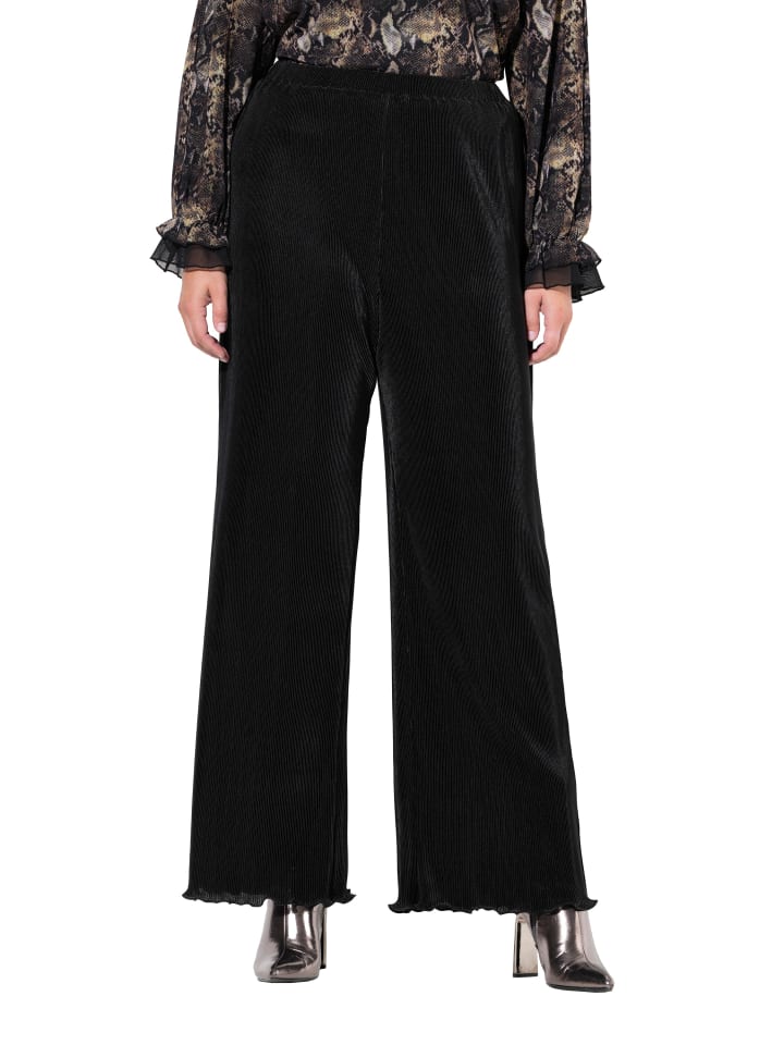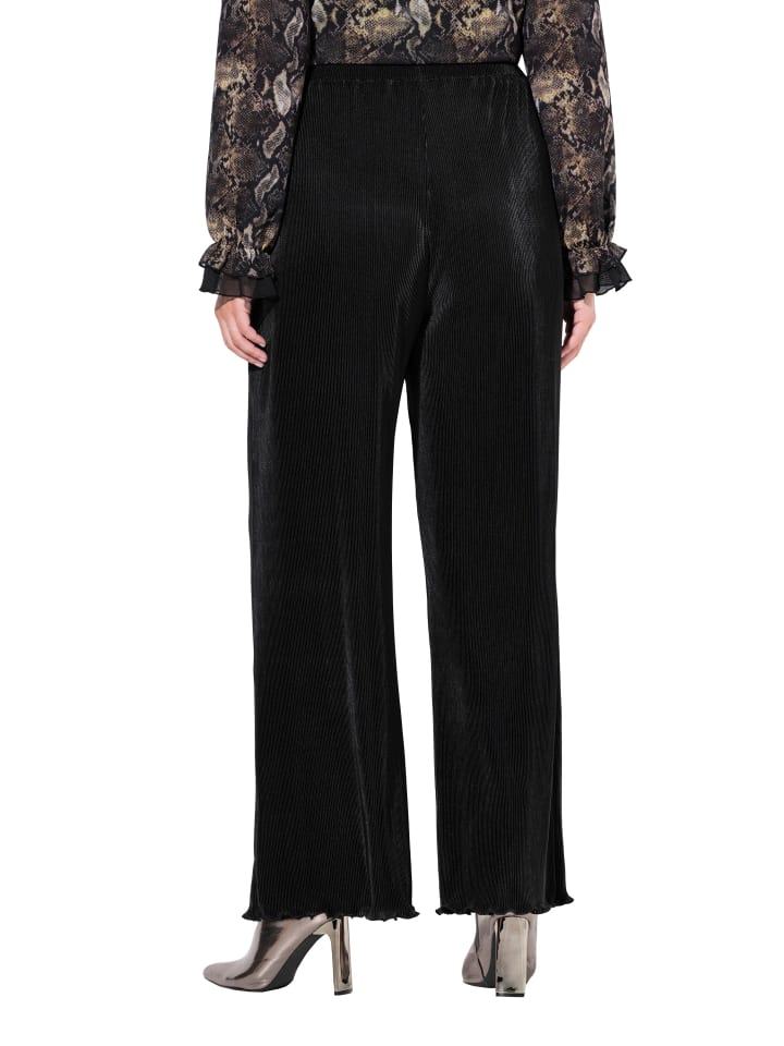 Брюки со стрелками, широкие, прямого покроя, с эластичным поясом.