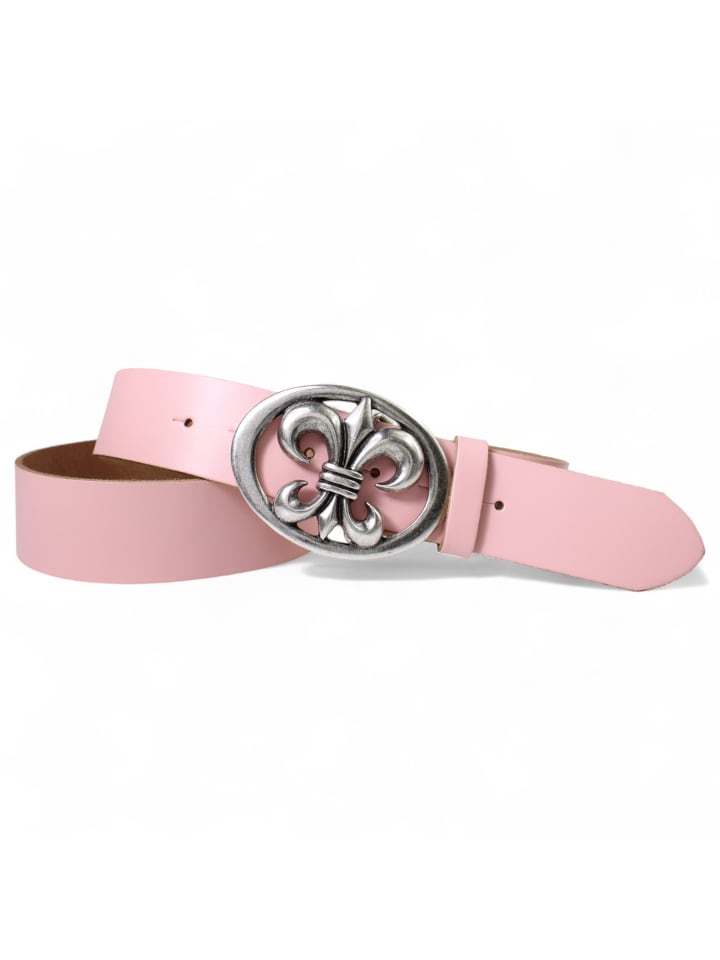 Эффектный женский ремень с красивой овальной пряжкой в виде геральдической лилии (фр. fleur-de-lis). Геральдическая лилия - самый известный символ французской монархии, уже много лет являющийся классикой дизайна. Благодаря нашей практичной системе застежек-кнопок пряжку или ремешок можно легко заменить. Таким образом, вы получаете больше возможностей для своего изделия!