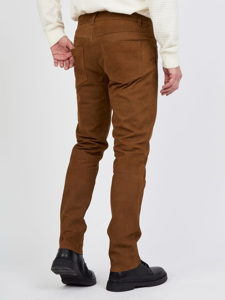 Классические прочные кожаные брюки. Эти брюки удобны и очень долговечны для использования дома, во время отдыха или работы в саду.