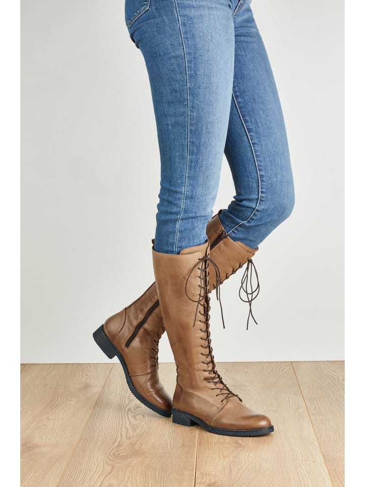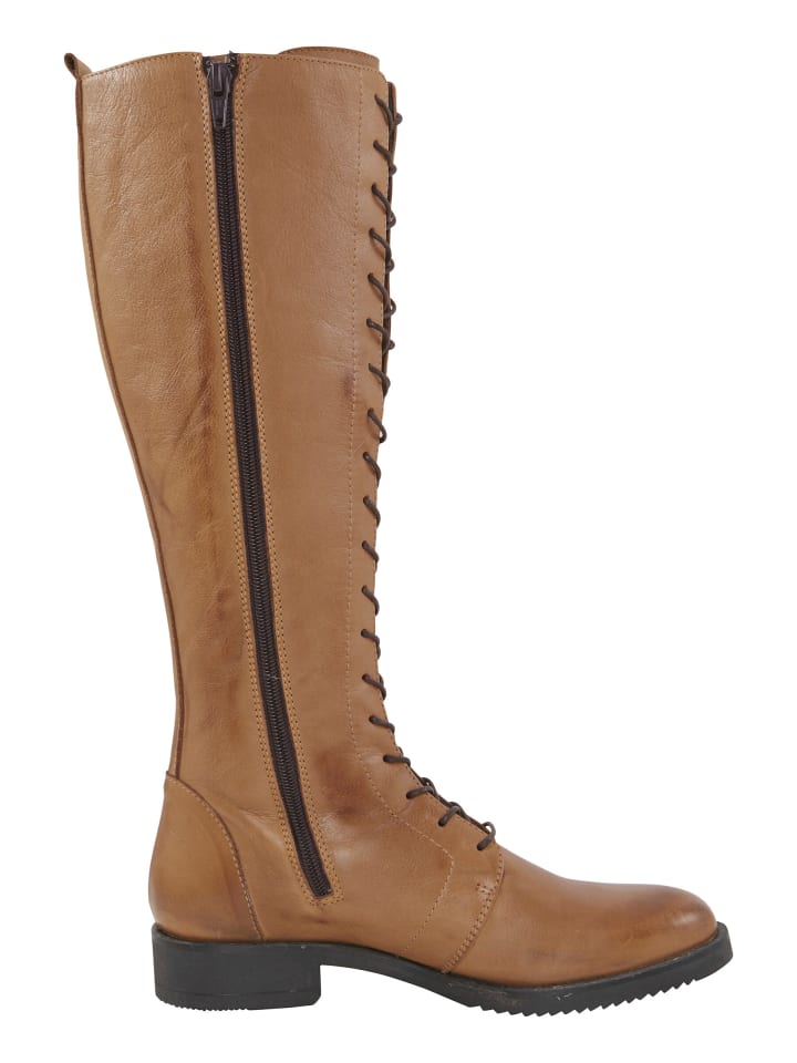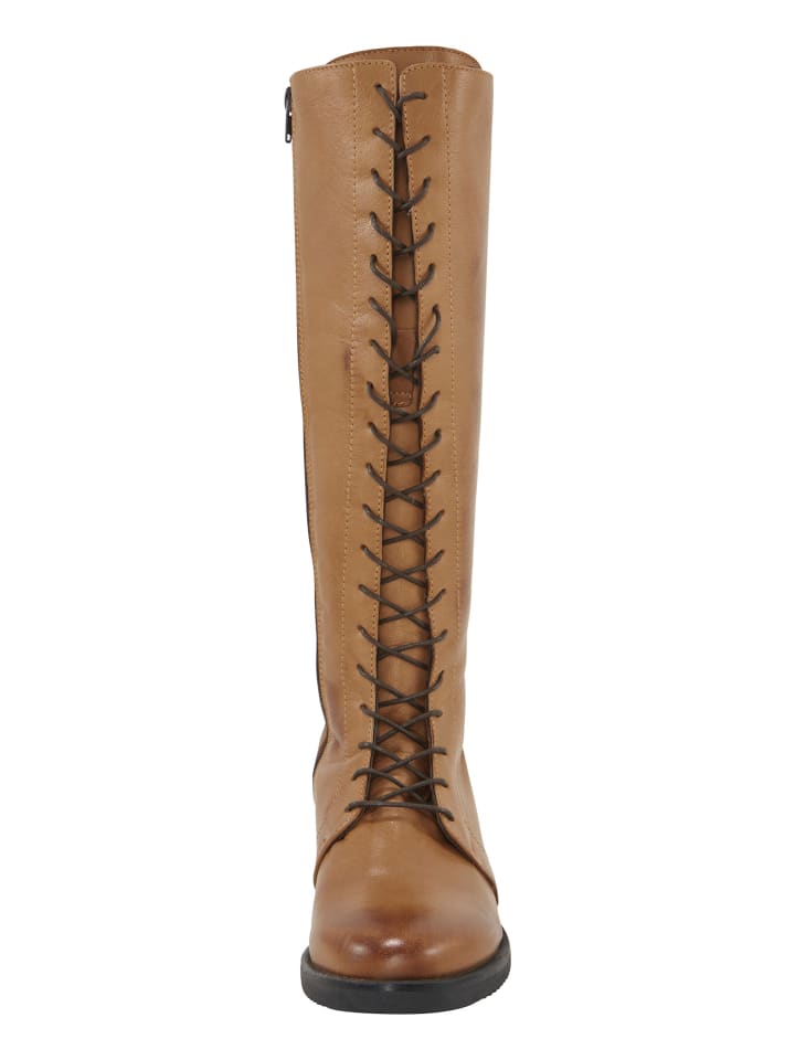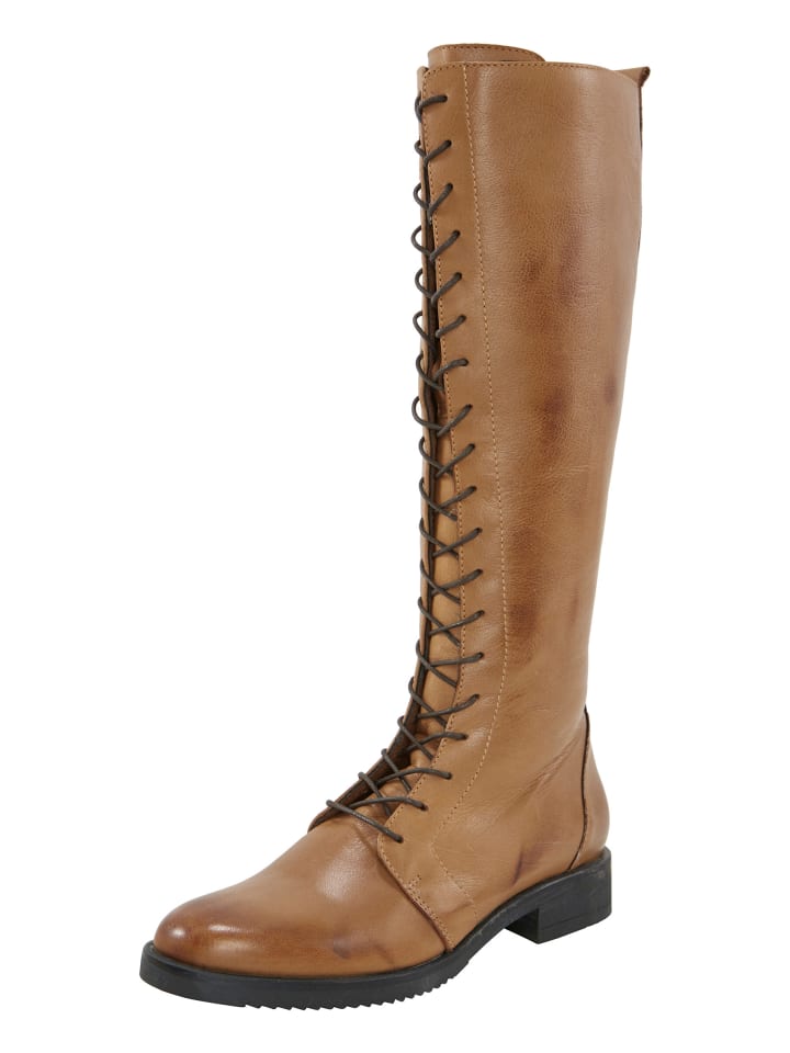 Ботинки на шнуровке из гладкой коровьей кожи. Подкладка: текстиль. Стелька: кожа. Размеры голенища (В/Ш) примерно 40 x 37 см. С блочным каблуком высотой примерно 30 мм.