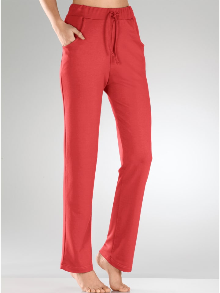 Удобные брюки из супермягкого трикотажного полотна. С широким эластичным поясом, кулиской и боковыми карманами.