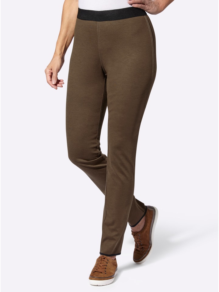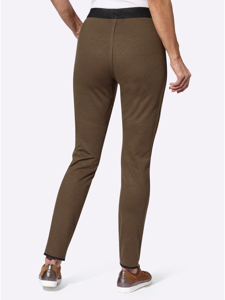 Один стиль, два образа! Эти мягкие двусторонние брюки из вискозы легко вывернуть наизнанку. Одна сторона однотонная, другая - с современным двухцветным узором «гусиная лапка». Легко надеваются благодаря эластичному поясу. Вырезы на штанинах отделаны окантовкой. Длина брючины около 32 см.