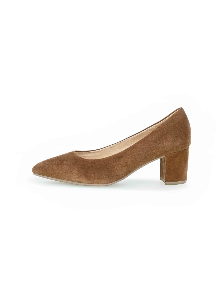 Эти красивые туфли от Gabor - туфли-лодочки. Эти коричневые женские туфли впечатляют своим лаконичным дизайном и отражают актуальные обувные тенденции. Большие размеры обуви Gabor идеально сочетаются с городским стилем и дополняют любой современный или классический спортивный образ. Верх выполнен из замши, подкладка - из кожи. Эти туфли доступны в стандартной полноте (F). Подошва из термополиуретана обеспечивает уверенную походку, а блочный каблук высотой 5,5 см создает гармоничный силуэт.