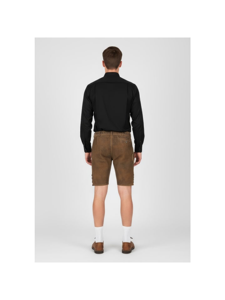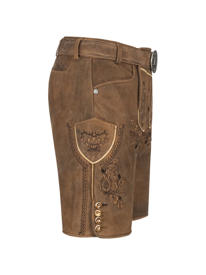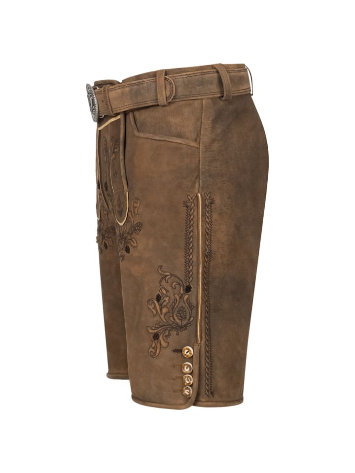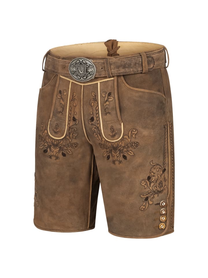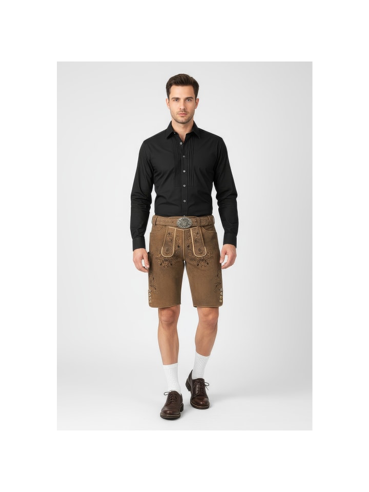 Кожаные брюки Antonio от Krüger - абсолютный маст-хэв на Октоберфесте. Мягкий, эластичный кожаный верх с эффектной вышивкой на бедрах и нагруднике делает их по-настоящему привлекательными. Еще одна изюминка - пряжка ремня с детальной отделкой. Ластовица сзади позволяет легко отрегулировать брюки по обхвату талии. Стильные пуговицы на нагруднике и штанинах идеально дополняют эти элегантные кожаные брюки. Сзади также есть карман для кошелька. На правой штанине вы найдете небольшой карман для мелочей, например, мелочи. Эти кожаные брюки сочетают в себе традиционное мастерство с практичными деталями и станут настоящей приманкой для глаз на Октоберфесте. - Мягкая и эластичная кожа - Брюки с ремнем - Изысканная вышивка - Ластовица на поясе для легкой регулировки по обхвату талии - Задний карман для кошелька Материал: 100% кожа
