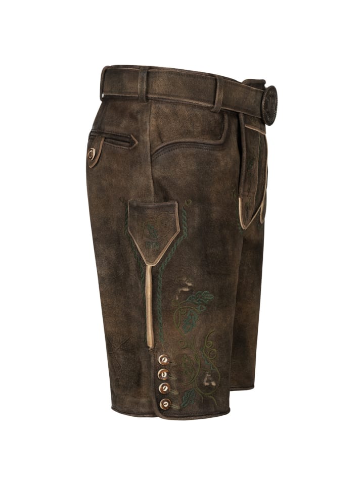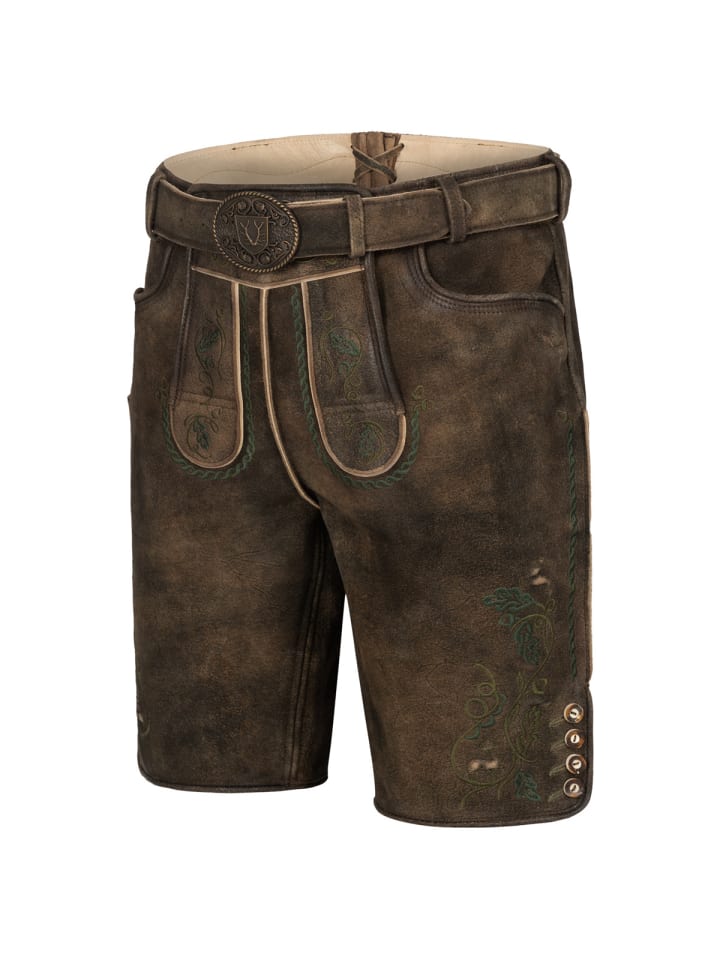 Кожаные брюки Tarius от Krüger - абсолютный маст-хэв на Октоберфесте. Мягкий, эластичный кожаный верх с эффектной вышивкой на бедрах и нагруднике делает их по-настоящему привлекательными. Еще одна изюминка - пряжка ремня с детальной отделкой. Ластовица сзади позволяет легко отрегулировать брюки по обхвату талии. Стильные пуговицы на нагруднике и штанинах идеально дополняют эти элегантные кожаные брюки. Сзади также есть карман для кошелька. На правой штанине вы найдете небольшой карман для мелочей, например, мелочи. Эти кожаные брюки сочетают в себе традиционное мастерство с практичными деталями и станут настоящей приманкой для глаз на Октоберфесте. - Мягкая и эластичная кожа - Брюки с ремнем - Изысканная вышивка - Ластовица на поясе для легкой регулировки по обхвату талии - Задний карман для кошелька Материал: 100% кожа