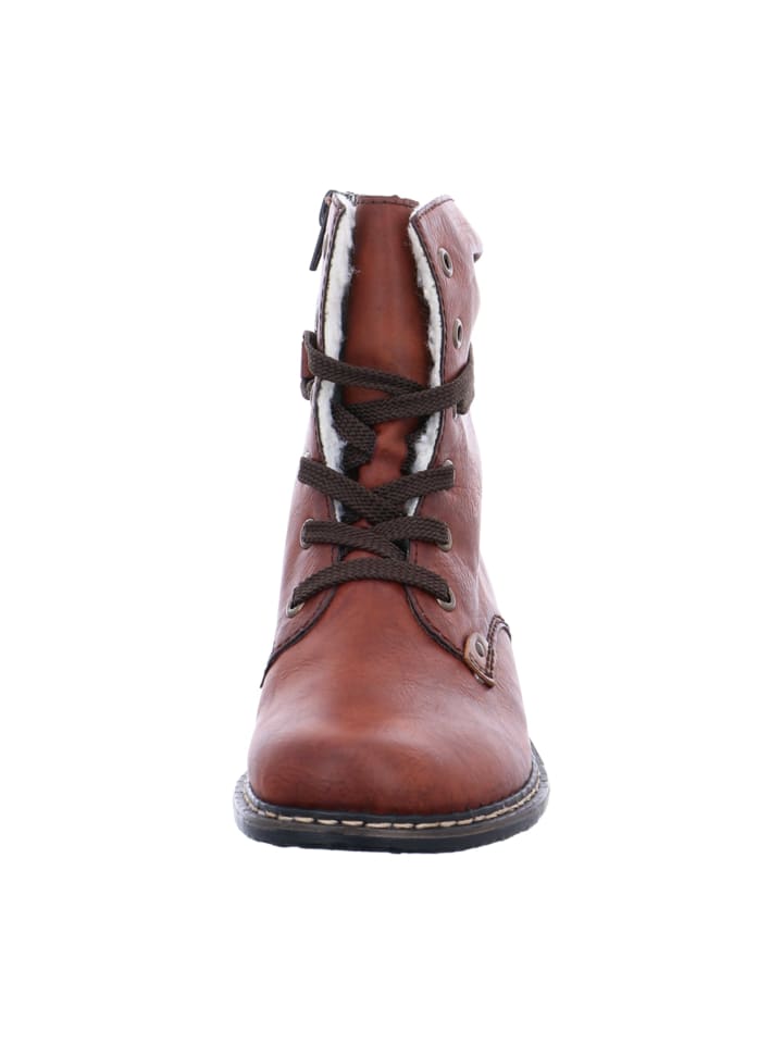 Ботинки Rieker на шнуровке. Синтетический верх идеально подходит для создания разнообразных образов. Подкладка из искусственного меха и прочная синтетическая подошва дополняют эти ботильоны.