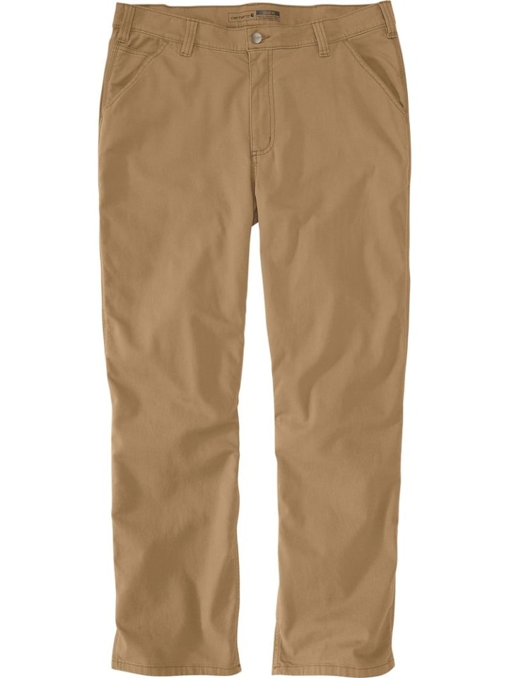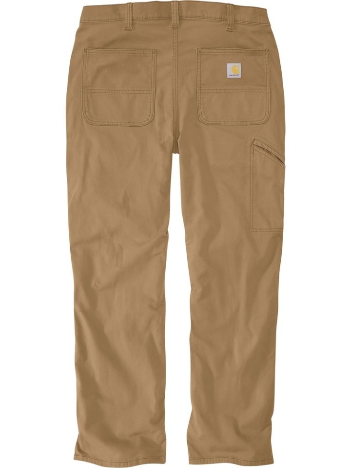 Широкий крой, прямой крой · 8,5 унций/ярд² - 288 г/м² · 98% хлопок/2% эластан · Холст · Повышенная эластичность - облегчает движения · Свободная посадка на ягодицах и бедрах с максимальной свободой движений, посадка немного ниже талии · Длинные брюки · Два усиленных передних кармана с листочкой · Карман для монет в правом переднем кармане · Карман для мобильного телефона на правой штанине · Более прочные, пришитые шлевки для ремня · Ярлык Carhartt пришит к карману