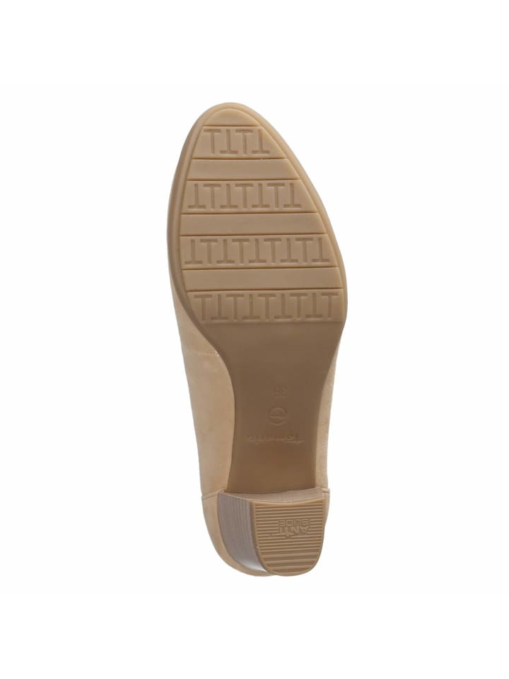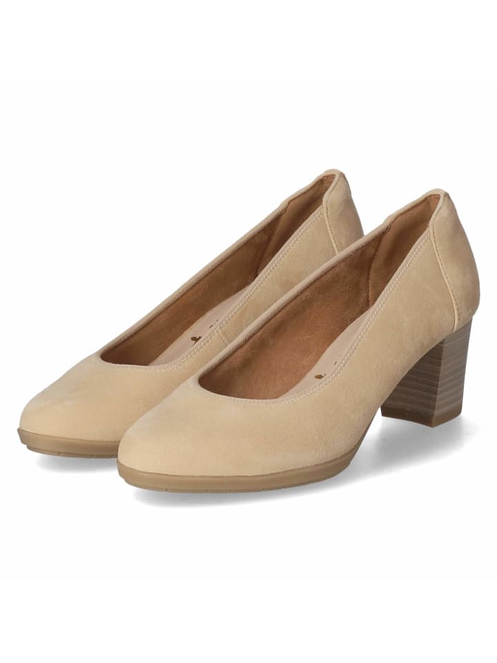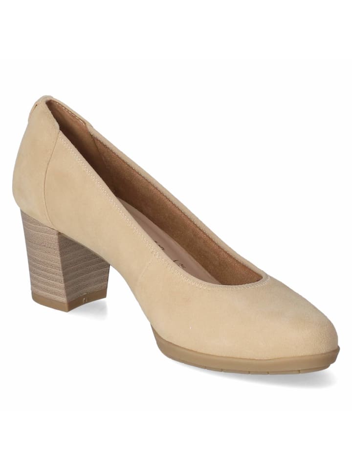 Вневременный дизайн и комфорт: эти бежевые туфли от Tamaris обеспечивают устойчивость и легкую высоту благодаря блочному каблуку высотой 6 см. Бархатистая замша из прочной натуральной кожи гармонично сочетается с круглым носком и золотистым фирменным акцентом. Открытый носок позволяет легко надевать и снимать туфли, а укрепленная пятка обеспечивает поддержку. Мягкая текстильная подкладка и мягкая кожаная стелька ласкают ваши ноги, а гибкая нескользящая подошва обеспечивает поддержку при каждом шаге. Модель соответствует размеру и легко впишется в любой гардероб - элегантный образ для офиса, стильный для вечера. Модный совет: струящиеся брюки-кюлоты и тонкий трикотаж кремового цвета создают мягкий образ тон в тон, который изящно подчеркивает теплый бежевый тон обуви.