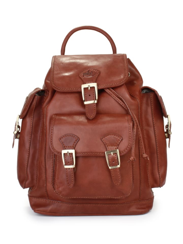 Стильный кожаный рюкзак от Piké! Этот элегантный кожаный рюкзак - идеальный спутник для коротких поездок. Для походов любой длительности, длительных пеших походов или велопрогулок - с этим ностальгическим приобретением вы всегда будете во всеоружии. Вместительное основное отделение кожаного рюкзака вместит все, что вы захотите взять с собой в дорогу. Два внешних кармана вмещают бутылку воды объемом 0,5 литра, а накладной карман с застежкой-кнопкой обеспечивает легкий доступ к вашей походной карте.