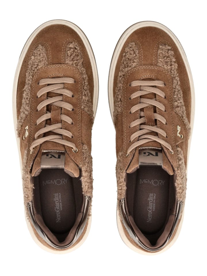 Эти модные и современные кроссовки от Nero Giardini подойдут как для работы, так и для отдыха. Верх выполнен из кожи и текстиля. Кожаную стельку можно снять и заменить при необходимости. Эта эксклюзивная модель отличается уникальным плюшевым дизайном и эмблемой бренда.