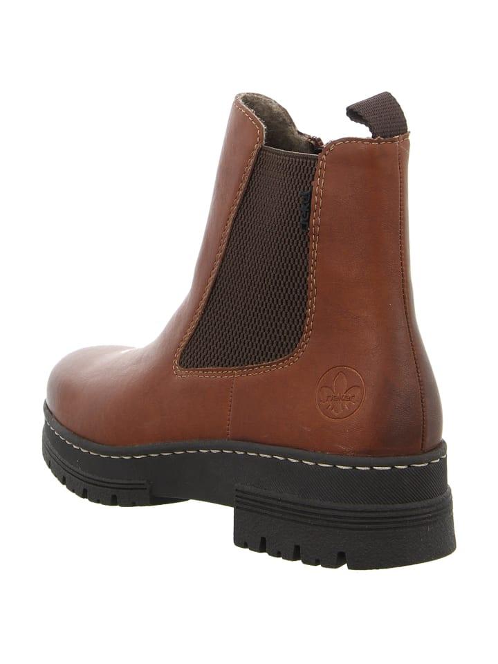 Эти коричневые ботильоны от Rieker обеспечат вам комфорт и тепло в холодное время года. Теплая подкладка защитит ноги от низких температур. Профилированная подошва и функция «антистресс» обеспечивают надежное сцепление и максимальный комфорт. Стильные ботинки «челси» визуально дополняются эффектной белой строчкой на подошве. Благодаря своему простому дизайну эта обувь Rieker подойдет практически к любому наряду.