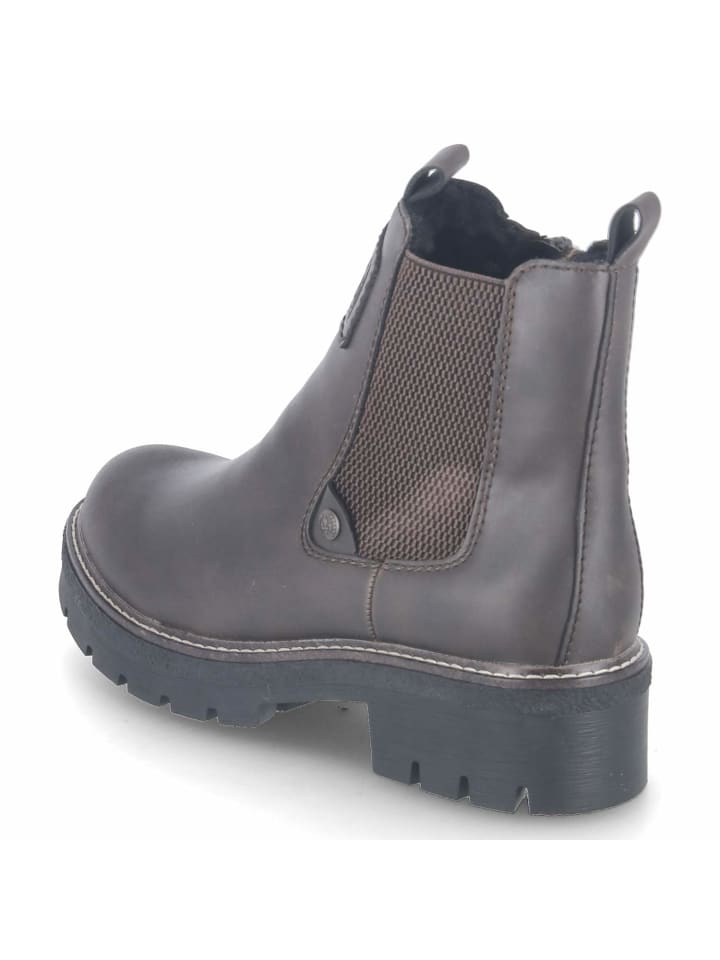 Прочные для повседневной носки и элегантные: ботинки Rieker Chelsea с теплой подкладкой для прохладной погоды и легким в уходе верхом из коричневой искусственной кожи дополнены темно-коричневыми деталями. Пятисантиметровый блочный каблук обеспечивает устойчивость, а нескользящая гибкая подошва - сцепление на мокрой поверхности. Комфорт обеспечивают закругленный носок и удобная съемная стелька с текстильным покрытием. Эластичная вставка в области голенища обеспечивает гибкость, молния и два язычка позволяют легко надевать ботинки, а усиленная область пятки обеспечивает поддержку. Универсальные, подходят для любых случаев: от офиса до отдыха. Модный совет: сочетайте эти туфли с леггинсами из искусственной кожи, длинной рубашкой и шерстяными носками для легкого завершающего штриха и создания яркого силуэта.