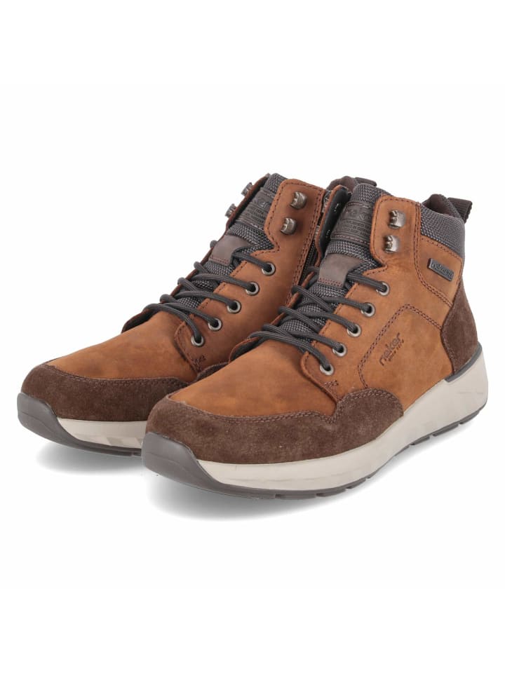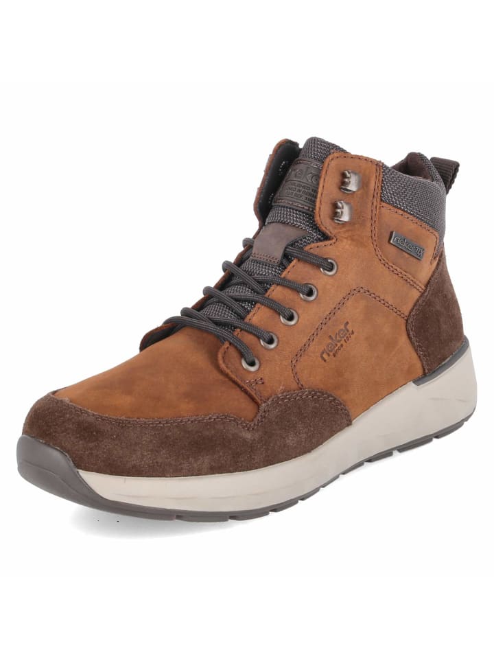 Эти зимние ботинки Rieker сочетают в себе спортивный вид и практичность для повседневной носки. Смесь кожи и синтетических материалов водонепроницаема, а водоотталкивающее покрытие обеспечивает надежную защиту. Мягкая, теплая подкладка согреет ноги, текстильная стелька обеспечивает удобную посадку, а съемная стелька позволяет оптимально отрегулировать стопу. Закругленный носок, шнуровка и боковая молния обеспечивают комфорт и строгий, мужественный вид. Усиленные области на пятке и носке повышают прочность, а мягкий воротник и язычок позволяют легко надевать ботинки. Выполненные в коричневом цвете и с облегающим кроем, эти ботинки легко впишутся в любой зимний гардероб. Модный совет: Идеально сочетается с темными джинсами, водолазкой и укороченным шерстяным пальто для создания элегантного повседневного образа.