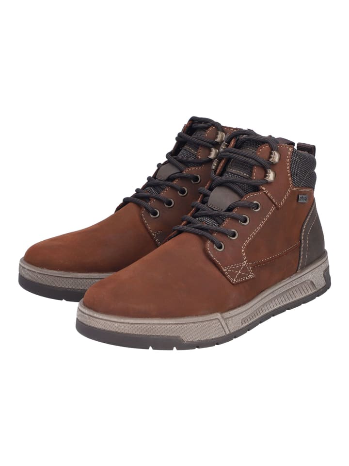 Повседневные ботильоны на шнуровке от Rieker с великолепным сочетанием гладкой кожи и текстиля. Благодаря прочной подошве с рантом Goodyear и теплой подкладке эти ботильоны идеально подходят для зимы.