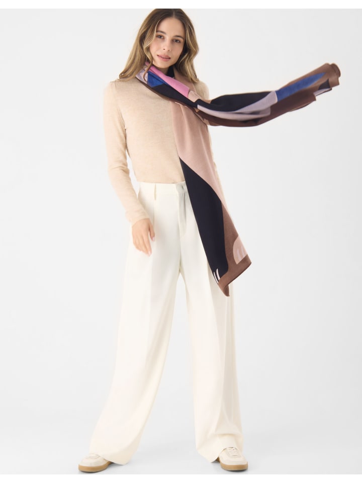 Этот мягкий шарф в естественных тонах украшен абстрактным рисунком лисы, оживленным тонкими цветовыми акцентами. Приятная легкая ткань приятна на ощупь и станет стильным повседневным аксессуаром. Необычный предмет одежды с современным дизайном и сдержанной игривостью.
