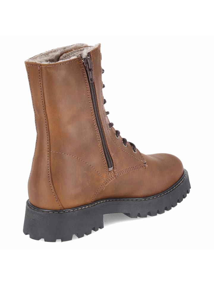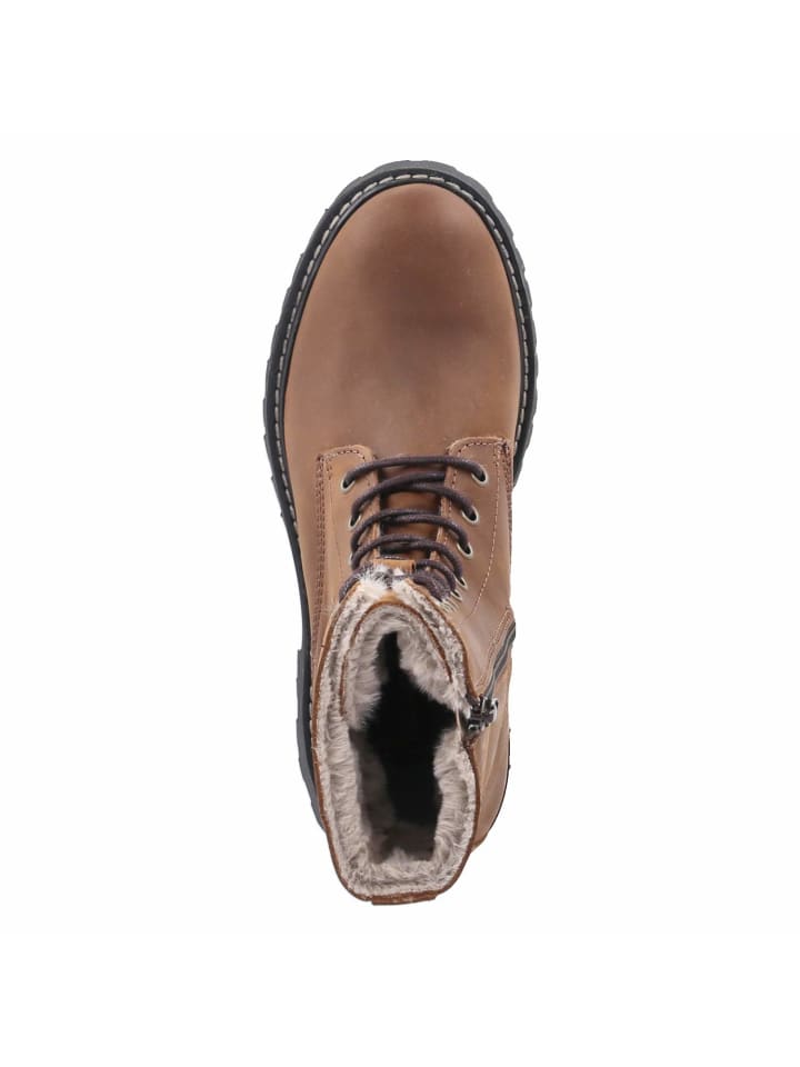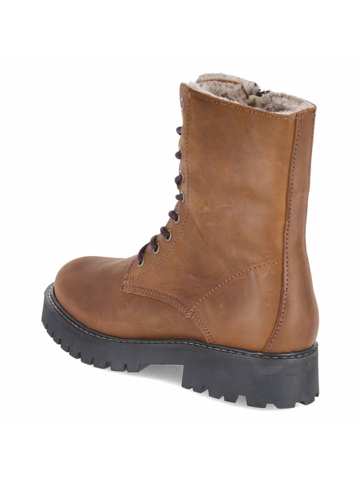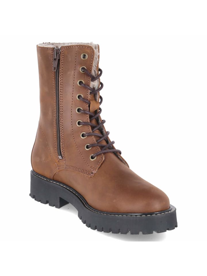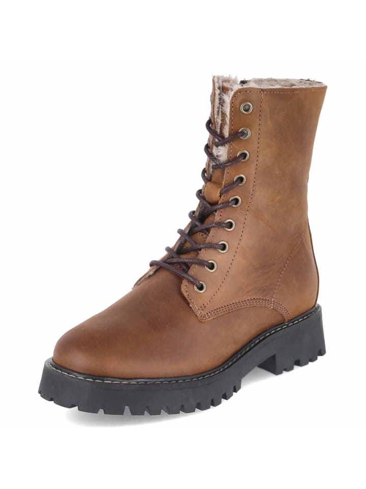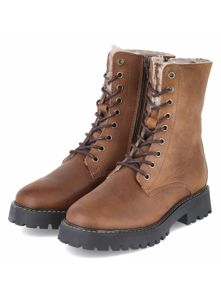 Эти женские ботинки на шнуровке от Fräulein Frida сочетают в себе комфорт, функциональность и стиль. Прочная натуральная кожа в сочетании с мягкой замшей сочетается с округлым носком, а каблук высотой 3,5 см обеспечивает комфорт при ходьбе. Теплая подкладка и текстильная стелька создают ощущение уюта. Прочная нескользящая подошва и усиленный каблук обеспечивают хорошее сцепление. Сочетание регулируемой шнуровки и практичной молнии облегчает повседневную носку. Мягкая отделка из искусственного меха на внутренней стороне голенища добавляет нотку зимнего очарования. Ботинки идут размер в размер и исключительно универсальны, прекрасно сочетаясь с чем угодно, от джинсов до платьев. Модный совет: наденьте широкие брюки из искусственной шерсти, водолазку и длинный стеганый жилет для создания современного текстурированного многослойного образа.