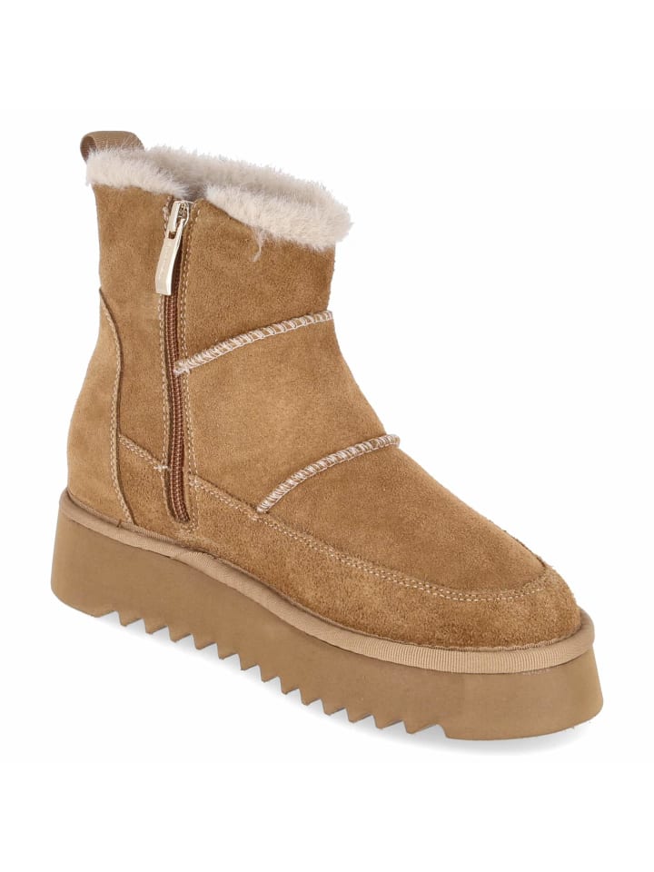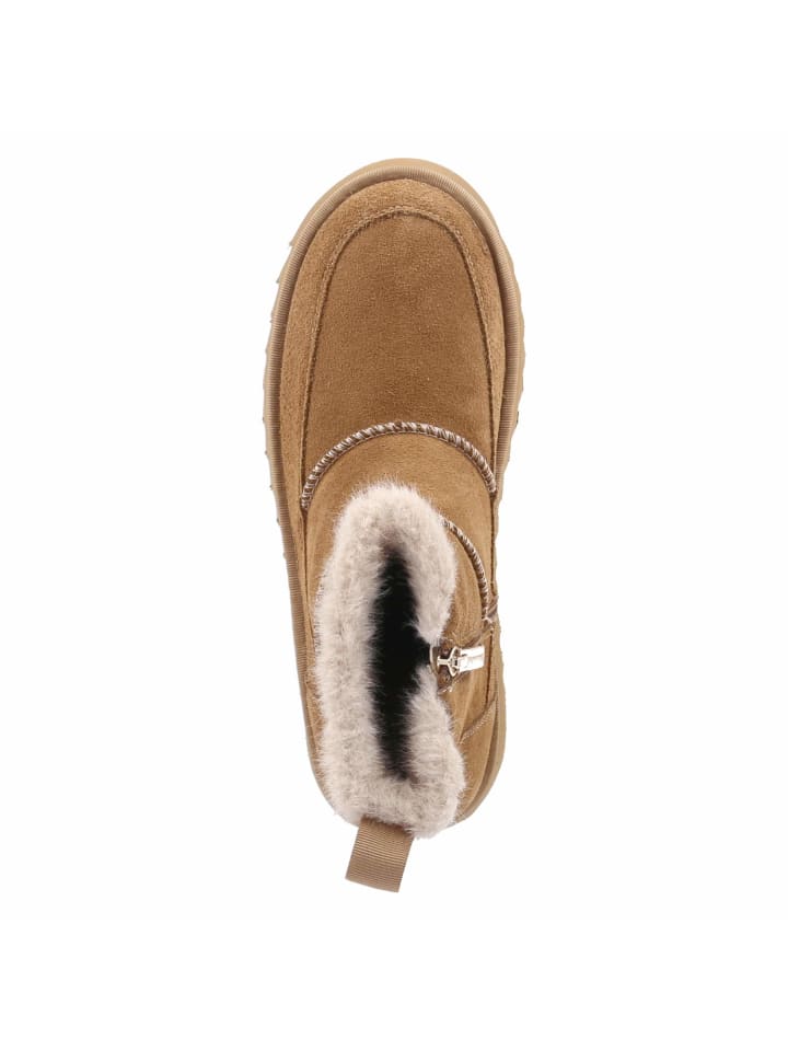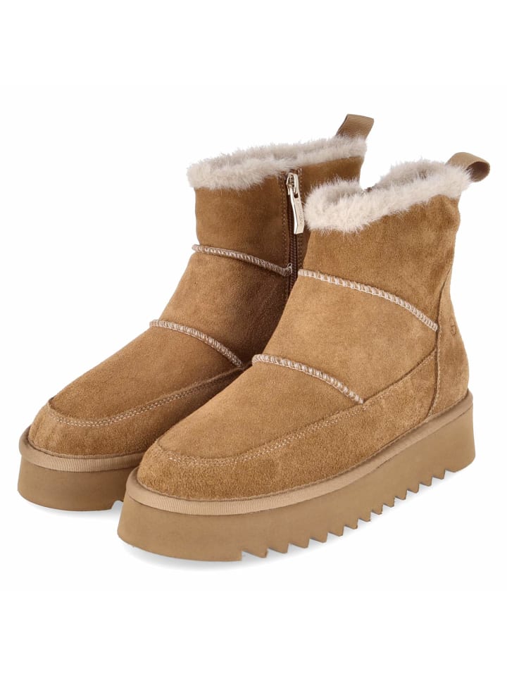 Зимние ботинки Tamaris в деревенском стиле привносят тепло и стиль в повседневную жизнь. Коричневая замша из прочной натуральной кожи украшена эффектной строчкой и дополнена отделкой из мягкого искусственного меха. Внутри - мягкий флисовый подклад, обеспечивающий комфорт, а текстильная стелька и мягкая стелька - комфорт при ходьбе. Платформа высотой 3,5 см обеспечивает мягкую амортизацию и современный профиль, сохраняя при этом приятную легкость. Закругленная колодка, стандартная посадка и практичная молния с язычком позволяют легко надевать и снимать ботинки. Усиленный рант повышает устойчивость и долговечность. Идеальный женский спутник для морозных дней с вневременной привлекательностью. Модный совет: сочетайте с прямой шерстяной юбкой, плотными колготками и бушлатом из чистой шерсти.