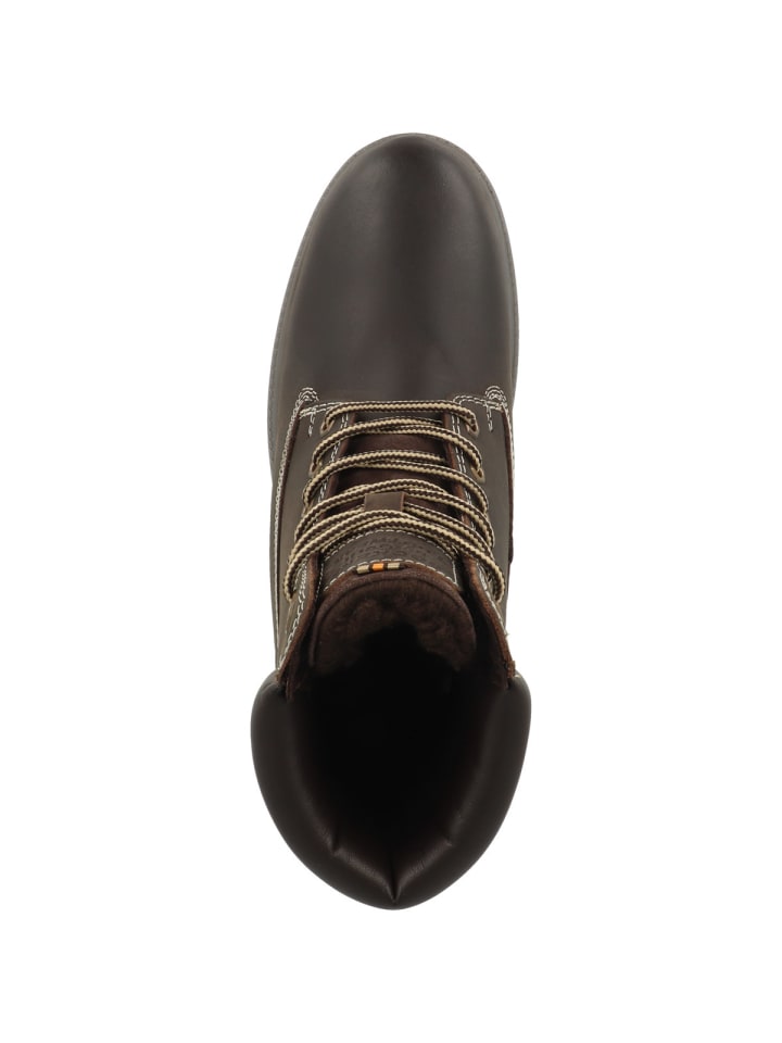 Верх из мягкой, эластичной и гладкой кожи гарантирует прочность и износостойкость. Стелька и подкладка из искусственного меха обеспечивают исключительный комфорт и тепло в течение всего дня. Контрастная декоративная строчка и логотип на язычке и сбоку идеально дополняют дизайн. Профилированная резиновая подошва и шнуровка обеспечивают надежное сцепление. Эти ботинки подойдут практически к любому наряду и станут незаменимой вещью в вашей коллекции обуви.