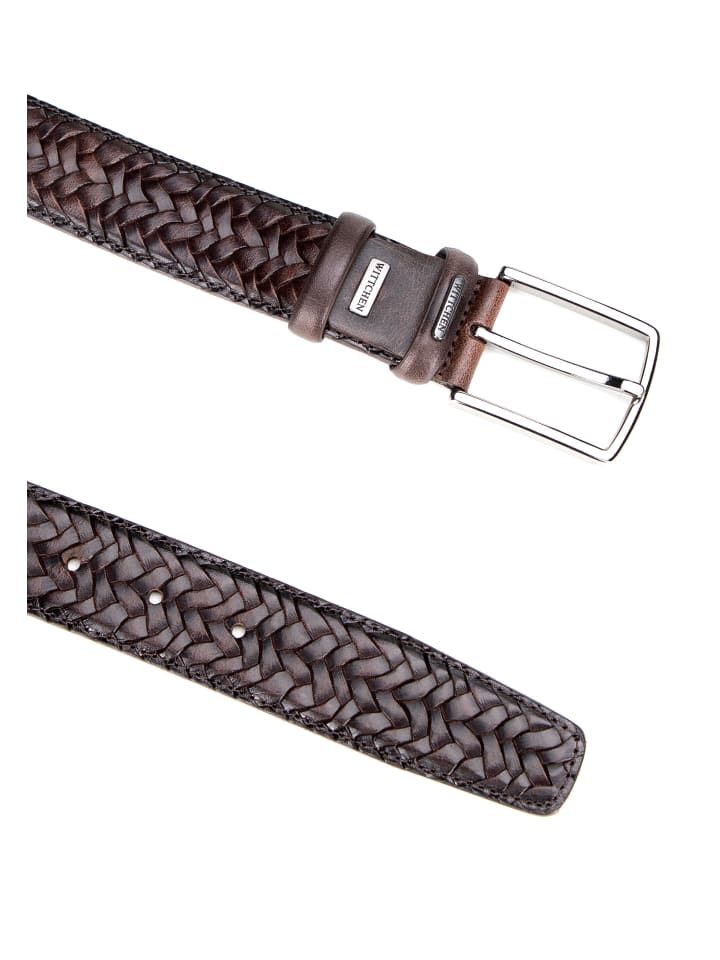 Минималистичная элегантность - этот мужской ремень из высококачественной натуральной кожи гарантирует прочность и комфорт в течение всего дня. Передняя часть ремня украшена тонким плетением, что придает ему современный вид и отличает его от классических моделей. Простая, но прочная металлическая пряжка завершает образ и подчеркивает внимание к деталям и высочайшее мастерство исполнения.