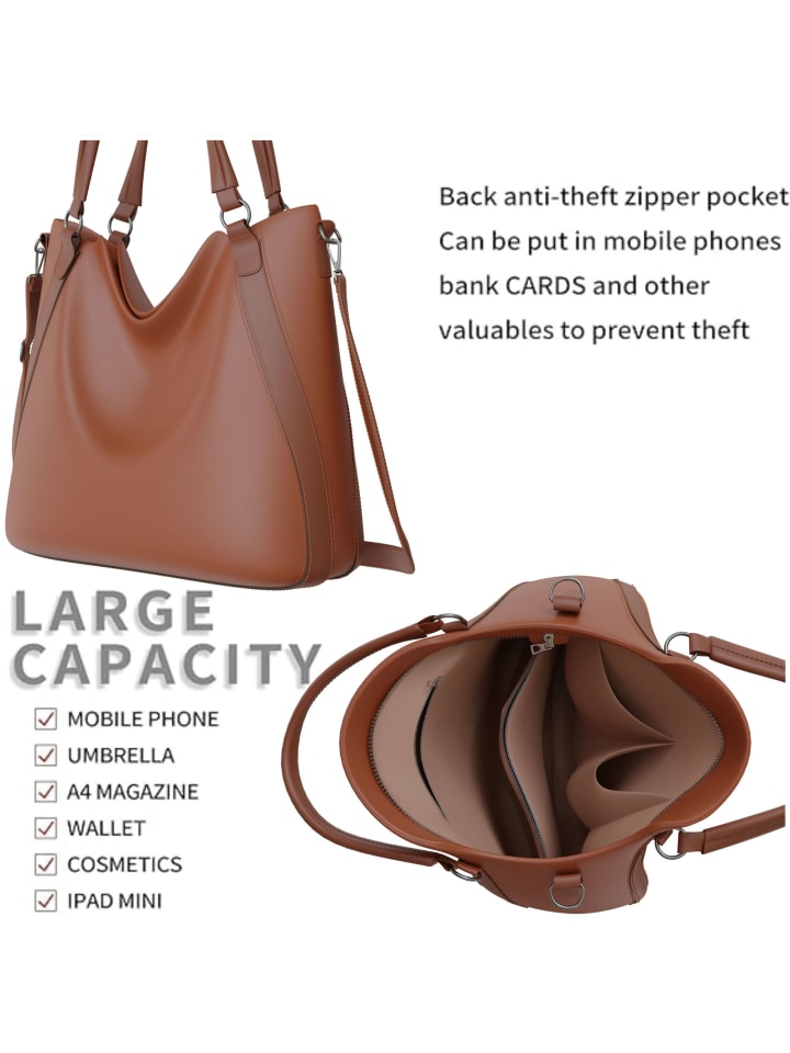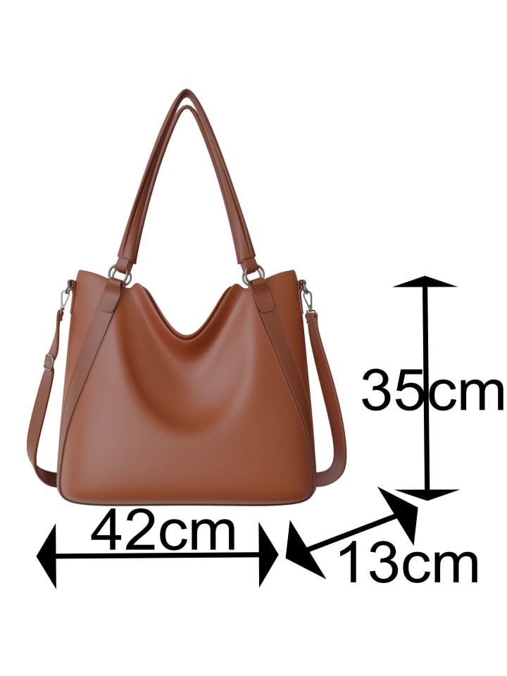 Эта женская сумка через плечо из высококачественной веганской кожи впечатляет своим элегантным дизайном и продуманной функциональностью. Размеры примерно 42 x 35 x 13 см позволяют разместить в ней все необходимые повседневные вещи - будь то офис, учеба или отдых.