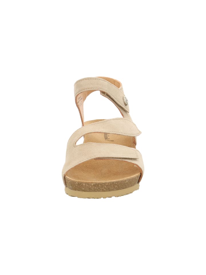 Сандалии DUMIA с низкой подошвой прекрасно подходят для лета благодаря игриво расположенным ремешкам и пуговице с логотипом Think! на ремешке на щиколотке. Эти женственные сандалии с ремешками изготовлены из мягкой кожи, которая мягко облегает стопу. Не менее приятно: привлекательный дизайн обеспечивает много места в области носка и мягкий шаг. Таким образом, DUMIA сочетает в себе непринужденный вид и исключительный комфорт.