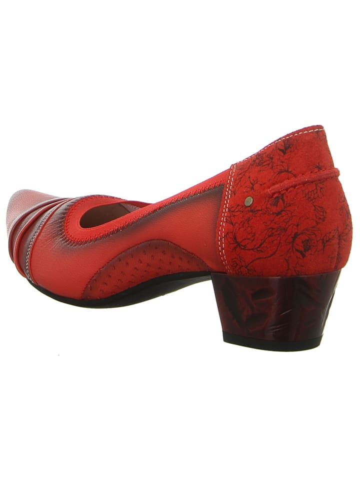 В этих красных туфлях Maciejka вы точно выделитесь из толпы. Красивый градиентный узор выполнен вручную, что делает каждую пару уникальной. Амортизирующая перфорированная стелька обеспечивает комфортный микроклимат стопы. Небольшой воронкообразный каблук гарантирует ходьбу без усталости. Тонкие цветовые вариации и привлекательный присборенный носок придадут вашему образу особый шарм с этими туфлями Maciejka.
