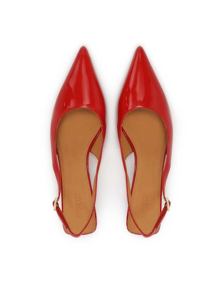 Эти классические туфли с открытой пяткой и ремешком на пятке из красной лакированной кожи - смелый и чувственный выбор обуви, привлекающий внимание своим интенсивным блеском и ярким цветом. Тонкий низкий каблук создает элегантный образ, обеспечивая комфорт и устойчивость, что делает их отличным выбором для повседневного ношения. Вы будете чувствовать себя уверенно и комфортно даже после длительной носки. Острый носок подчеркивает силуэт и визуально удлиняет ноги. Открытая пятка и ремешок на щиколотке добавляют легкости и женственного очарования, обеспечивая надежную посадку и устойчивость. Эти красные туфли из лакированной кожи - идеальный выбор для вечерних выходов, вечеринок или особых случаев. Мягкая подкладка из полуанилиновой овчины, известная своим превосходным влагопоглощением, гарантирует исключительный комфорт. Подошва из тунисской кожи гарантирует долговечность, прочность и эстетическую привлекательность обуви.