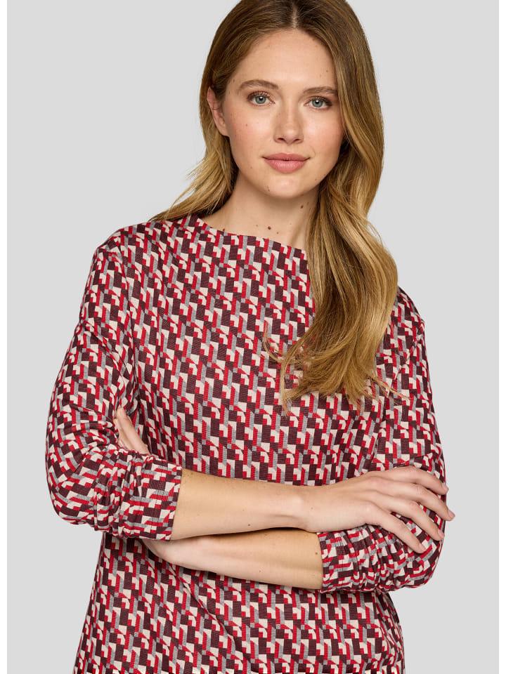 Этот свитер с графическим узором привнесет свежую динамику в ваш гардероб. Текстурированная тонкая трикотажная ткань приятно приятна на ощупь, а небольшой воротник-стойка добавляет современный штрих. Прямой крой обеспечивает удобную посадку и возможность комбинировать различные варианты - идеально подходит для повседневной носки и офиса. Графический узор по всей поверхности. Небольшой воротник-стойка. Прямой крой. Текстурированная тонкая трикотажная ткань.