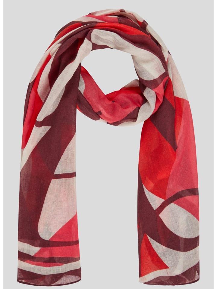 Этот шарф с ярким узором по всей поверхности добавит свежести любому образу. Сочетание прозрачного материала и графического дизайна в оттенках красного и бежевого создает современный и стильный образ. Этот аксессуар можно свободно повязать на шею или носить как яркий акцент с курткой, он станет универсальным дополнением к образу и создаст модный акцент. Привлекающий внимание принт по всей поверхности. Приятный, мягкий и воздушный. Идеально подходит для переменчивой погоды.