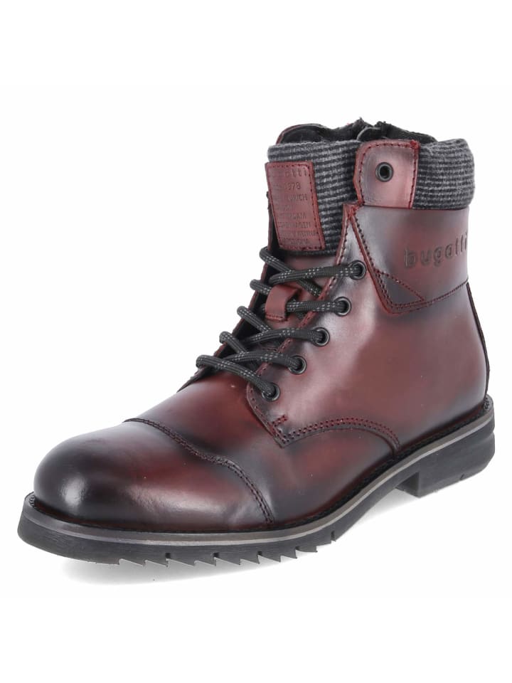 Красный принт, прочная конструкция: эти ботинки Bugatti на шнуровке с эффектом потертости сочетают в себе прочную кожу и текстиль с практичными деталями. Нескользящая подошва и блочный каблук высотой 3,5 см обеспечивают устойчивость, а усиленные носок и пятка - дополнительную защиту. Мягкий воротник и стелька из кожи и текстиля обеспечивают комфорт, а размер соответствует заявленному. Сочетание шнуровки и боковой молнии позволяет легко надевать ботинки, а закругленный носок и сдержанная фирменная бирка подчеркивают классический дизайн. Универсальные ботинки, подходящие как для городских условий, так и для повседневных мероприятий. Модный совет: черные джинсы прямого кроя, кремовый вязаный свитер и темно-синий бушлат создают изысканный образ с контрастным профилем.