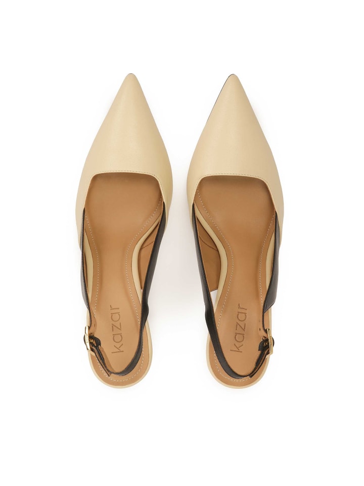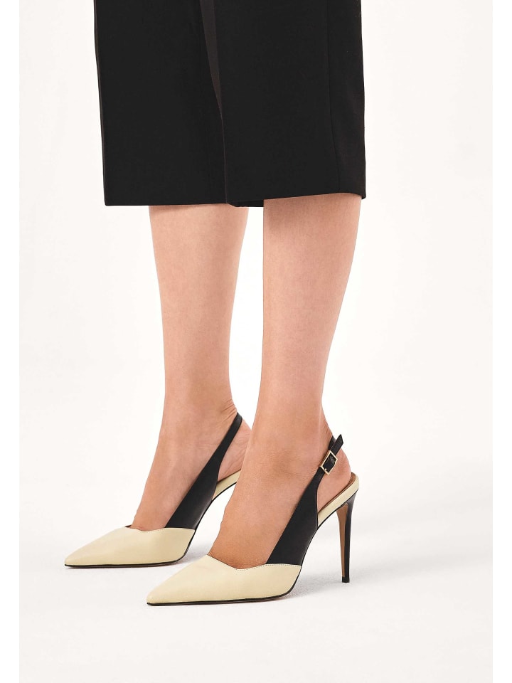 Туфли на высокой шпильке из высококачественной натуральной кожи отличаются элегантностью и классическим стилем, что подчеркивает их утонченный дизайн. Они гарантируют долговечность и комфорт, а их дизайн сочетает в себе современность с вневременной элегантностью. Туфли имеют двухцветный дизайн - носок нежного кремового тона, что придает им утонченность и легкость. Вторая часть верха выполнена в глубоком черном цвете, что придает туфлям характерный и элегантный вид. Открытая пятка, отделанная ремешком и пряжкой, делает туфли легкими и шикарными. Ремешок с пряжкой выполняет не только декоративную, но и практическую функцию: он стабилизирует стопу в обуви и обеспечивает безопасность при каждом шаге. Такое сочетание цветов и материалов делает эти туфли отличным выбором для элегантных вечерних выходов, идеально дополняя как вечерние образы, так и более официальные дневные наряды. Подкладка выполнена из мягкой полуанилиновой овчины, известной своим превосходным влагопоглощением и исключительным комфортом. Подошва изготовлена из кожи тунца, которая ценится за свою прочность и эстетическую привлекательность. Верх: кожа; Подкладка: Другой материал; Стелька: Другой материал; Подошва: Другой материал