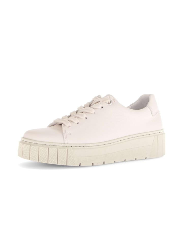 Низкие кроссовки Gabor кремового цвета - идеальный выбор для стильных женщин. Верх выполнен из прочной гладкой кожи, что придает кроссовкам характерный вид. Ширина H (широкая) означает, что эти кроссовки идеально подойдут женщинам с более широкой стопой. Эта модель оснащена съемной стелькой из переработанного материала, что не только повышает комфорт, но и соответствует принципам экологичности. Кроссовки Comfort Line предлагают больший объем в области подушечки и подъема стопы, а также больше места для пальцев ног, обеспечивая устойчивость.