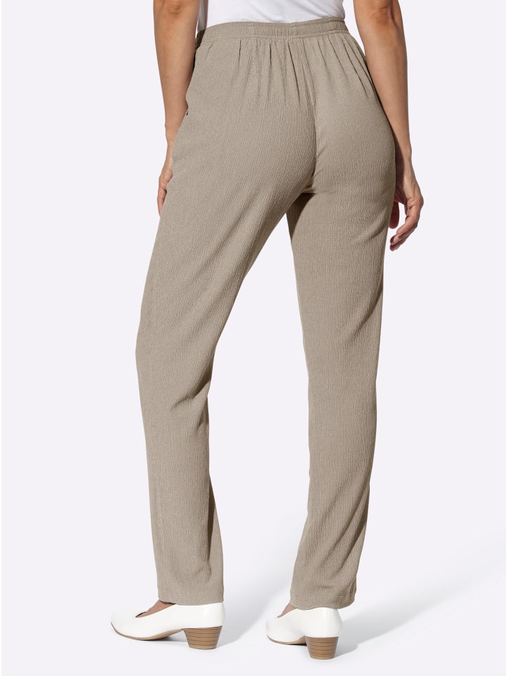 Идеально подходят для путешествий: невероятно удобные брюки из ткани, имитирующей древесную кору, за которой легко ухаживать. С эластичным поясом и боковыми карманами. Ремень в комплект не входит. Длина брючины примерно 42 см.