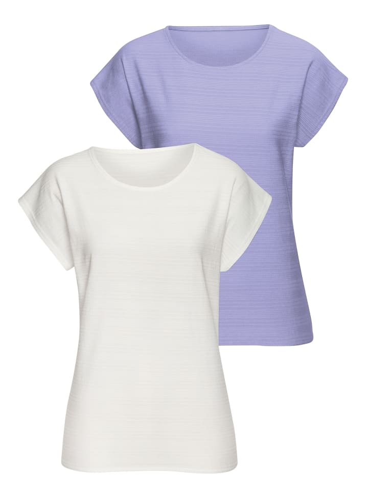 Футболки Vivance, упаковка из 2 шт. Декоративный полосатый рисунок. Круглый вырез горловины. Короткие бесшовные рукава. Свободный крой. Удобный хлопковый трикотаж. Покупка этого товара поддерживает инициативу «Хлопок, сделанный в Африке».