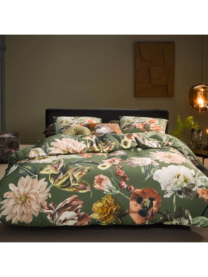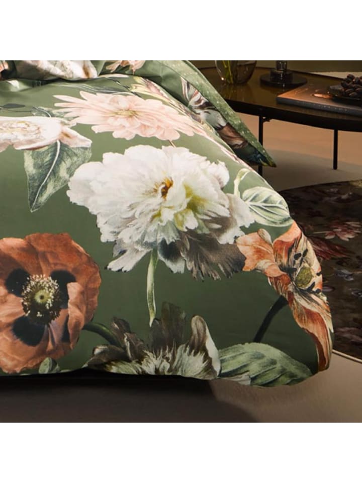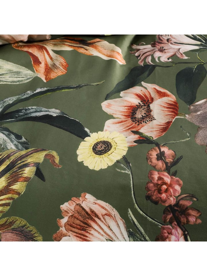 Очаровательное постельное белье Filou от ESSENZA воплощает мечты в реальность. Крупные, впечатляющие цветы и бутоны на фоне лесной зелени украшают этот восхитительный комплект постельного белья. Обратная сторона двустороннего постельного белья украшена тонким и элегантным узором в виде звезд. Изготовленное из 100% хлопкового сатина, это постельное белье мягкое и приятное на ощупь, обеспечивая максимальный комфорт во время сна.