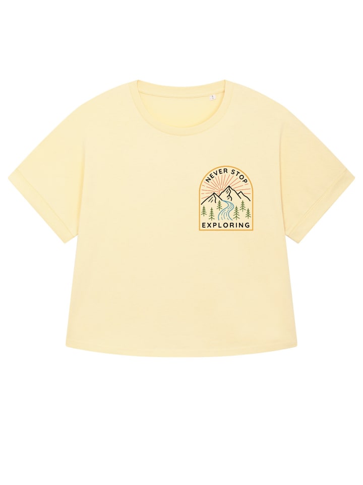 Женская футболка oversize свободного кроя из 100% органического хлопка. Эта органическая футболка изготовлена из расчесанного хлопка кольцевого прядения. Она мягкая и удобная. Сертифицировано в соответствии с GOTS (Глобальный стандарт органического текстиля, BCS 35828).
