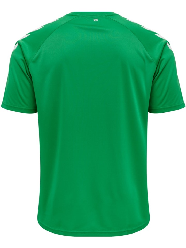 Футболка hmlCORE XK CORE POLY (размер S/S) станет отличным дополнением к вашему спортивному гардеробу. Эта футболка Hummel с короткими рукавами изготовлена из полиэстеровой ткани интерлок с технологией BEECOOL. Благодаря этому она сохраняет прохладу во время тренировок и достаточно прочная, чтобы носить ее снова и снова. Принт с шевроном и логотипом добавляет стильный штрих.