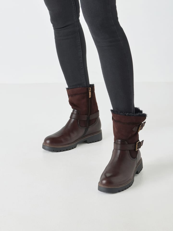 Эти ботинки Tamaris, готовые к любым приключениям, привнесут городской шик и комфорт в вашу повседневную жизнь. Практичная молния позволяет легко надевать их, а мягкая стелька Touchit обеспечит комфортную ходьбу даже в долгие дни или во время зимних прогулок. Толстая фактурная подошва обеспечит поддержку, а стильные пряжки дополнят ваш современный образ. Откройте для себя обувь, которая будет сопровождать вас с комфортом, уверенностью и стилем в любой ситуации.